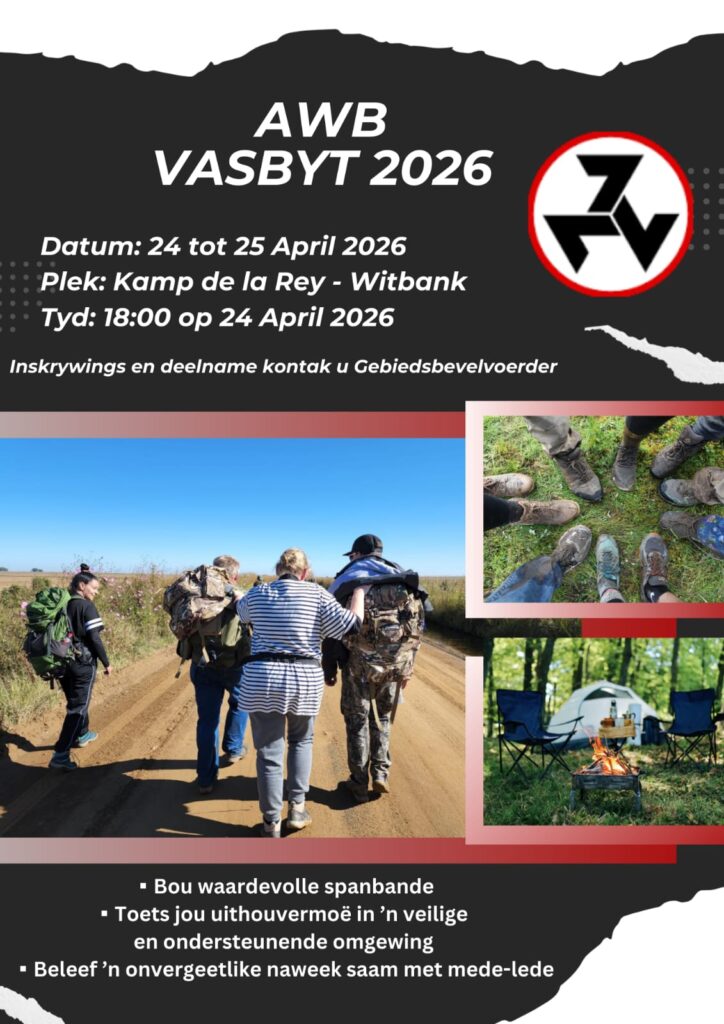 Die organisasie AWB bestaan reeds vir 52 jaar en beskik oor ‘n bewese voetspoor aangaande sy doen en late. Gegewe die gebeure van die afgelope klompie jare waaraan die BOERVOLK blootgestel is kan die vraag onwillekeurig gestel word : Lei die witman, en by name die BOERVOLK, aan ‘n selfvernietigings drang en/of is hy net moedeloos of vuisvoos ? Die rede tot hierdie opmerking spruit voort uit die feit dat daar blykbaar geen oorlewingsdrang met gepaard gaande optredes by hierdie deel van die bevolking waarneembaar is nie.